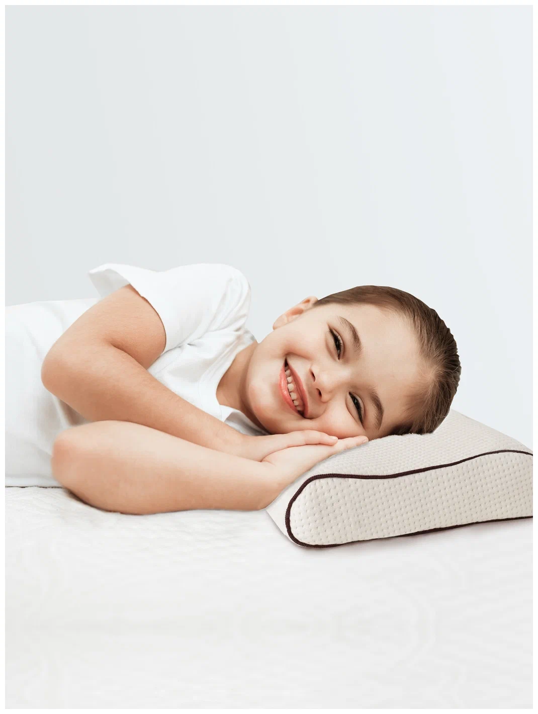 Анатомическая форма с валиками делает акцент на поддержку шеи. Эффект памяти помогает распределить давление и сделать опору более ровной. Высота 8 см — ключевой параметр: подбирайте под ширину плеч и любимую позу. Оптимальные сценарии — сон на боку/спине. Это вариант для регулярного сна, где важнее поддержка, чем «пышность».