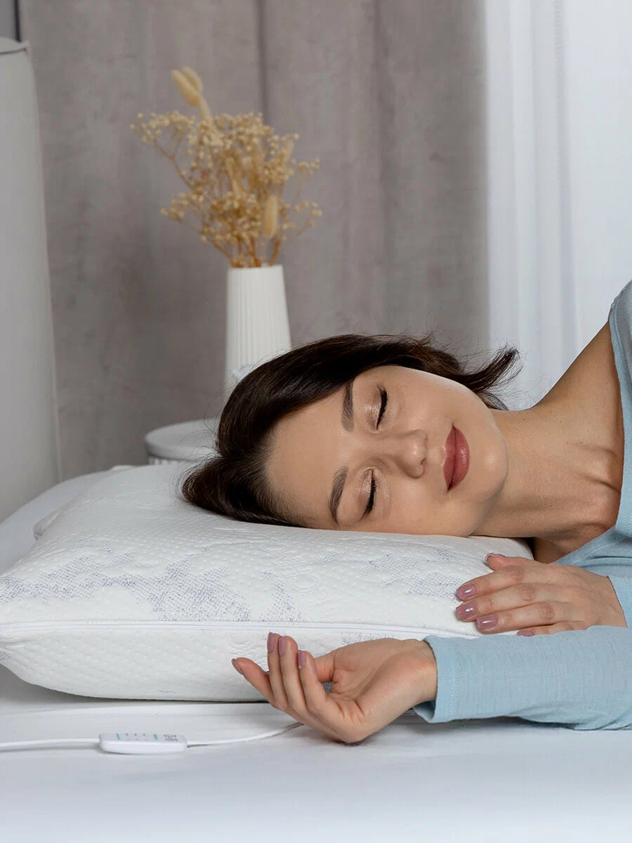 Встроенная нагревательная пластина, расположенная с одной стороны подушки, создает мягкую и равномерную термо-терапию, которая помогает расслабить напряженные мышцы шеи, плеч и спины. Такой теплый эффект способствует снятию стрессов, улучшает кровообращение и способствует более глубокому и спокойному сну.
