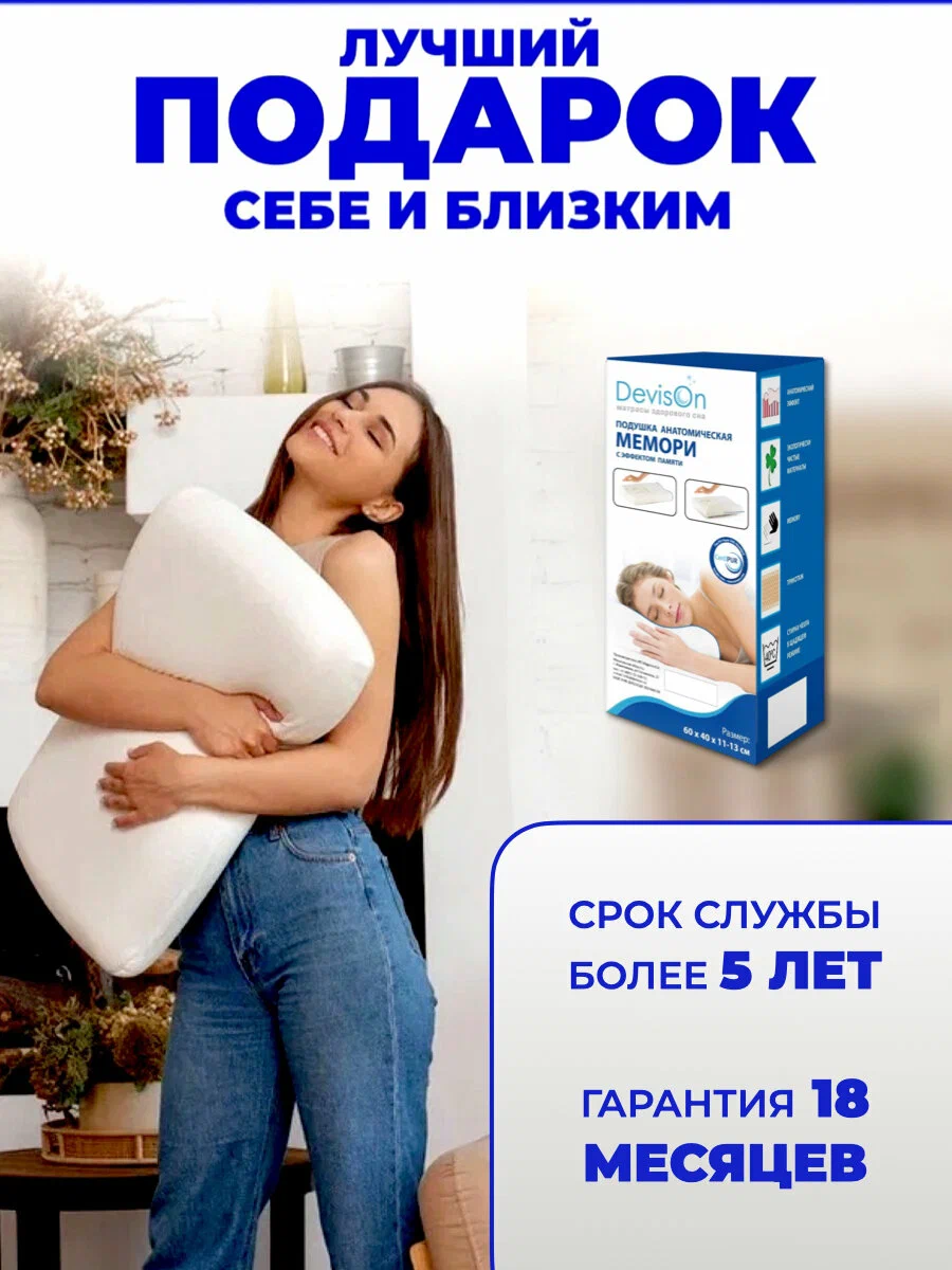 Анатомическая подушка с ортопедическим эффектом выполнена из инновационного материала - вязкоэластичная пена MEMORY FOAM, а также сама классическая форма подушки дарит мышцам головы и шеи полное расслабление, поддерживает голову в правильном положении во время сна. Благодаря форме и высоте 13см можно выбрать степень поддержки и комфортную высоту для отдыха, которая подойдет именно Вам. Ортопедическая подушка предназначена для сна в любом положении. Способствует крепкому и здоровому сну. Чехол выполнен из мягкой, приятной на ощупь трикотажной ткани. С любовью, Ваш Девисон!