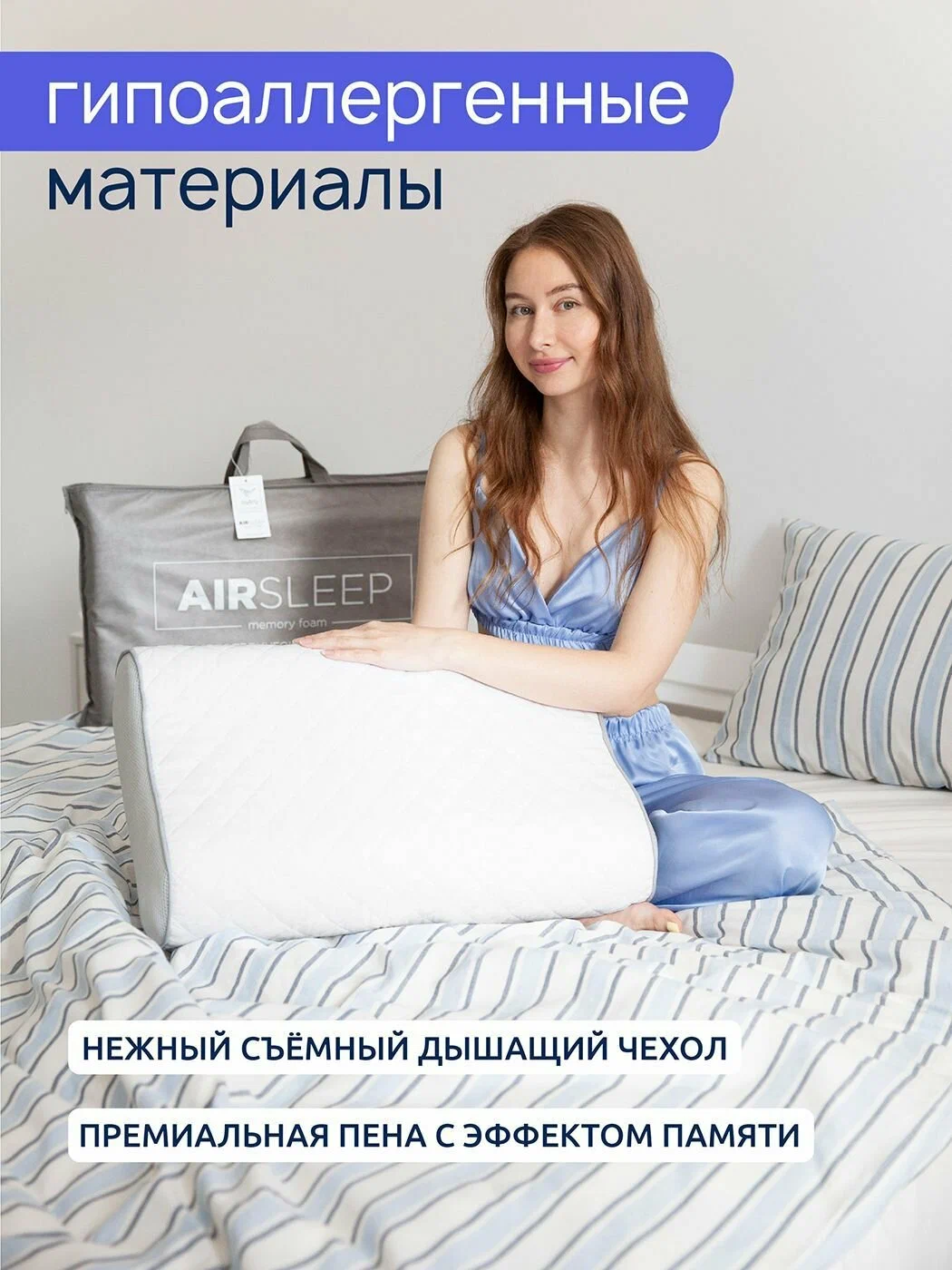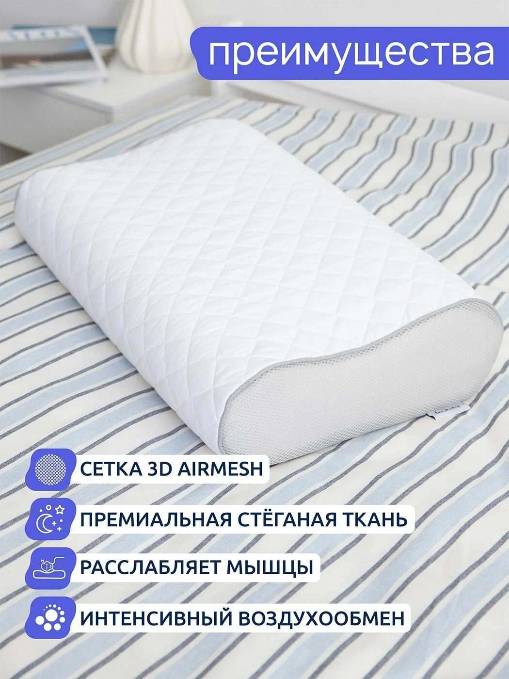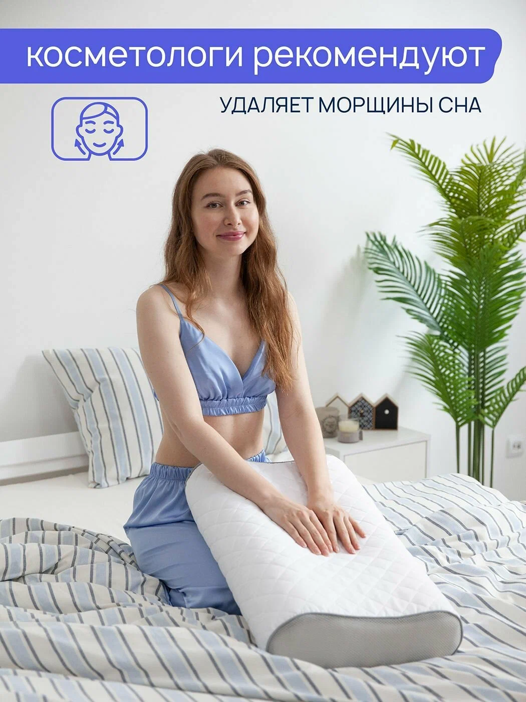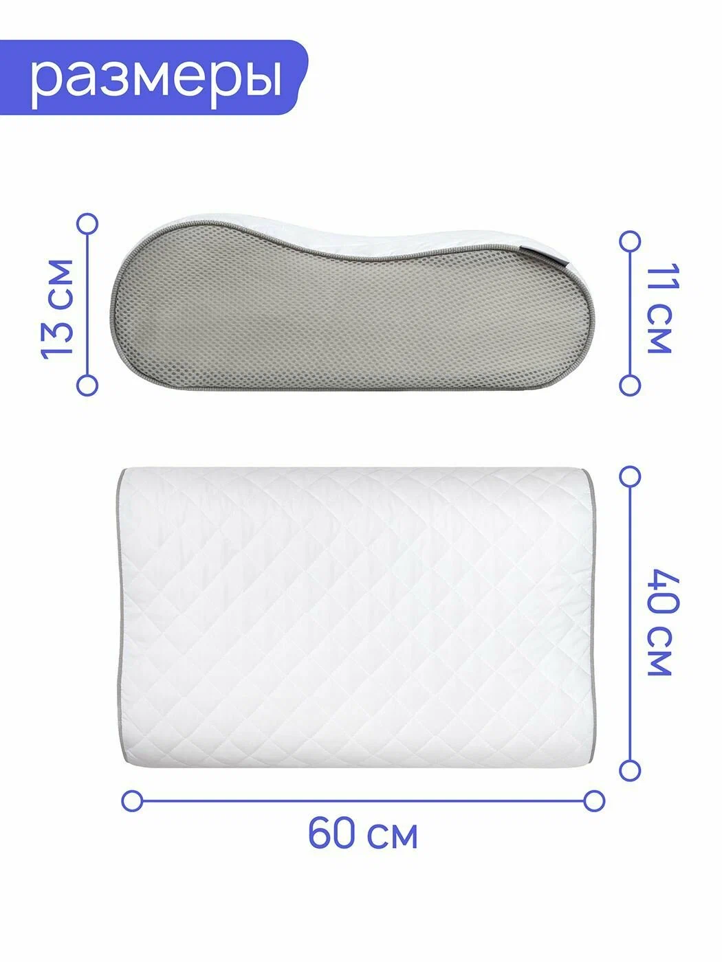 Анатомическая подушка с валиками 60х40 см, высота валиков 13 и 11 см - обеспечит комфортный и здоровый сон!