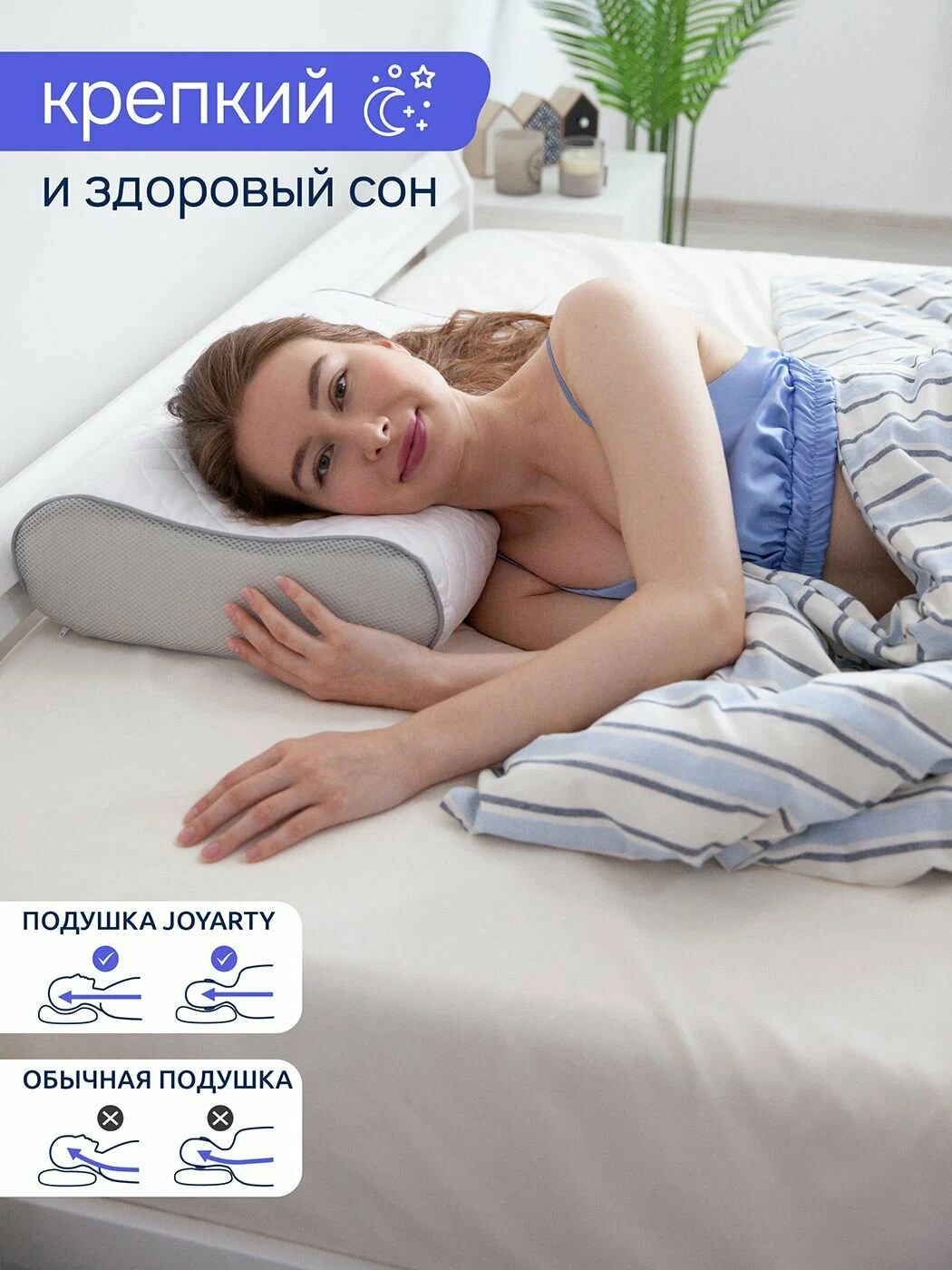 Современная премиум подушка JoyArty принимает форму головы и шеи, обеспечивая правильную поддержку позвоночника, что уменьшает нагрузку на шейные мышцы и снижает риск появления морщин. Съемный текстильный чехол на молнии из качественной стеганой трикотажной ткани на основе волокон 100% полиэстера обладает высокой воздухопроницаемостью за счет 3D сетки, расположенной по бокам, предотвращающей потоотделение во время дневного и ночного сна. Изделие подходит для людей, склонных к аллергии.