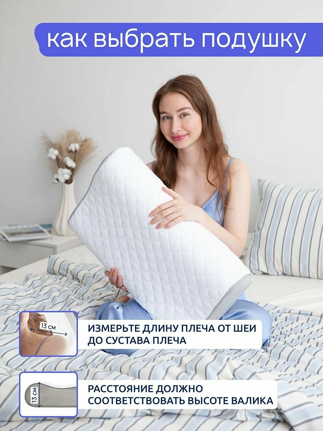 Анатомическая форма с валиками делает акцент на поддержку шеи. Эффект памяти помогает распределить давление и сделать опору более ровной. Высота 13 см — ключевой параметр: подбирайте под ширину плеч и любимую позу. Оптимальные сценарии — сон на боку/спине. Для лучшего результата сочетайте с подходящим матрасом и привычной наволочкой.