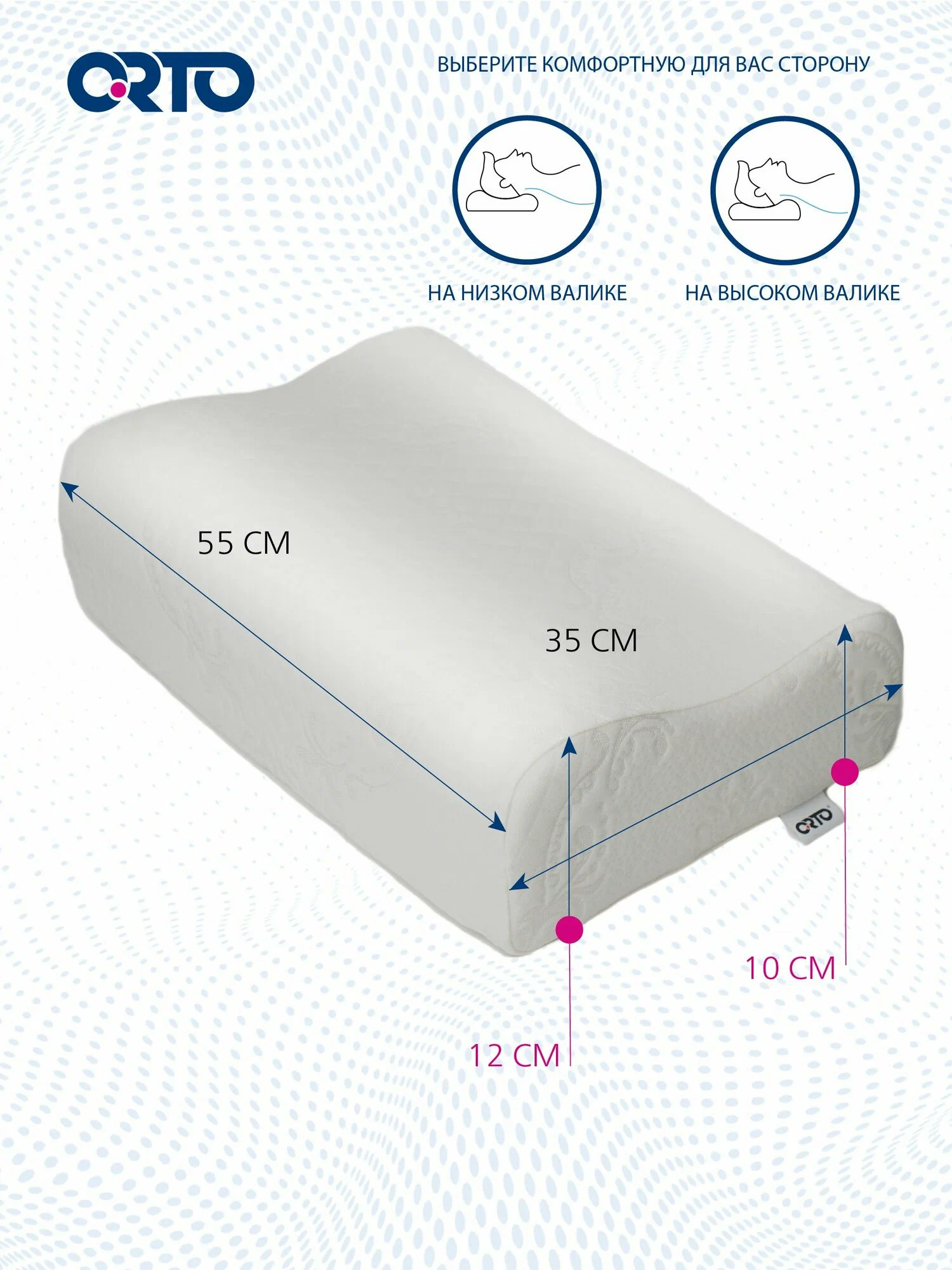 Подушка ортопедическая для сна ORTO ПС-110 с двумя анатомическими валиками разной высоты. Анатомическая подушка адаптируется под любое положение тела: меньший валик удобен для сна на спине, больший — для сна на боку. Основа ортопедической подушки изготовлена из материала Memory Foam с эффектом «памяти формы» и позволяет принимать правильное анатомическое положение во время сна. Благодаря использованию пены c эффектом памяти, подушка эффективно адаптируется к форме тела, обеспечивая максимальную поддержку для шеи и головы. Материал также имеет охлаждающий эффект, что особенно ценно в жаркое время года. Съемный чехол фиксируется при помощи застежки-молнии.