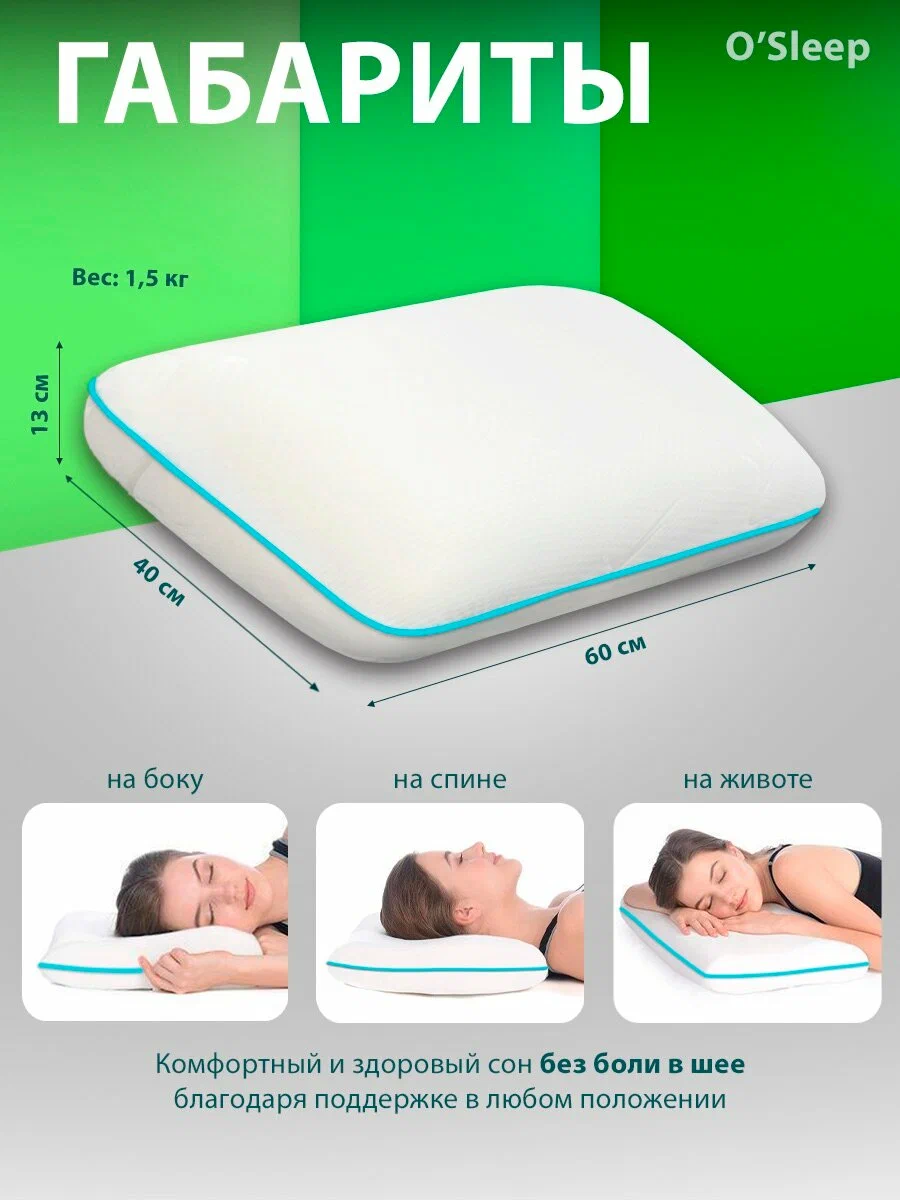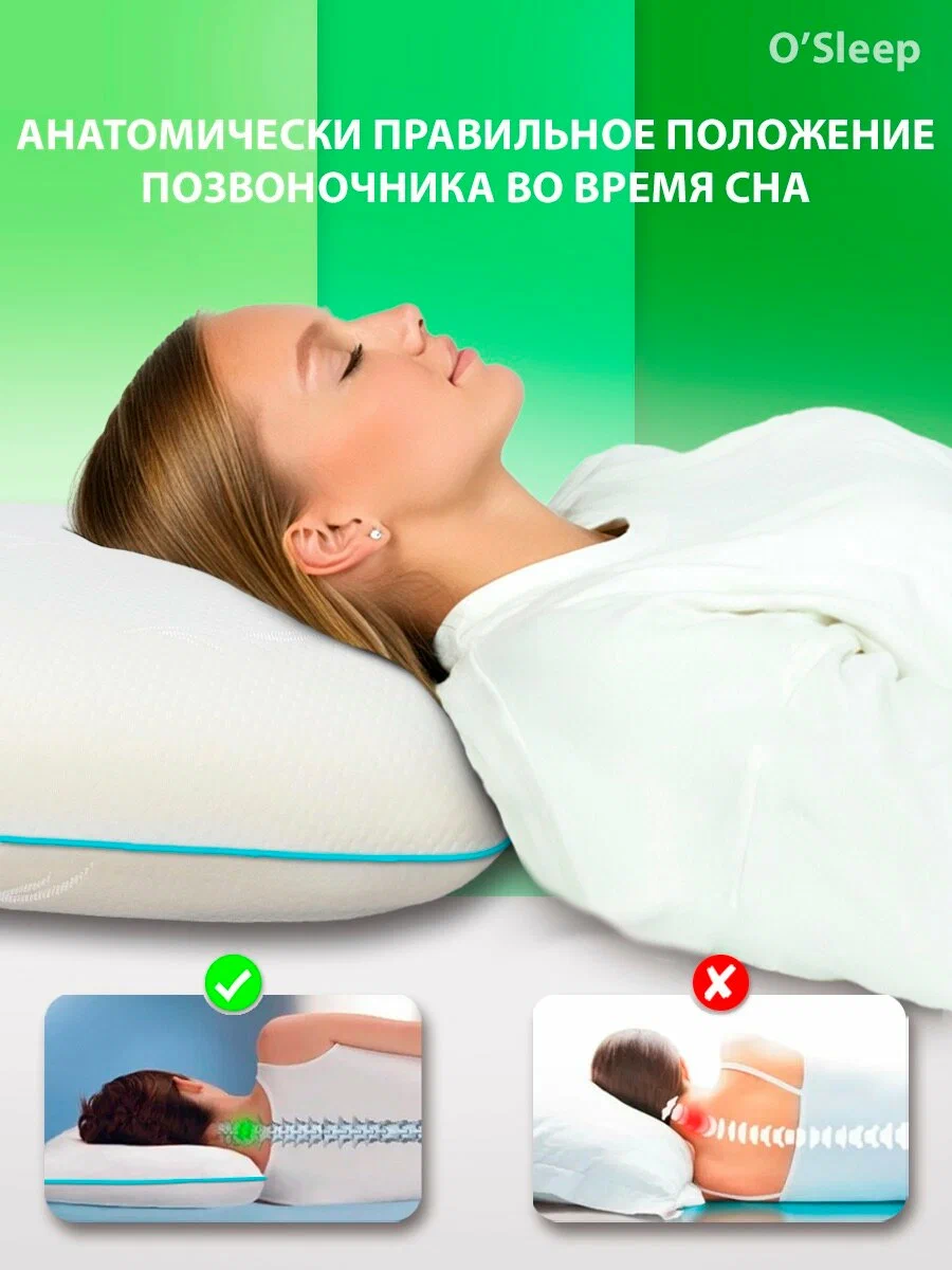 • Подходит для всех положений тела: Подушка подходит как для сна на спине, так и на боку или животе, идеально поддерживает шейку и голову.