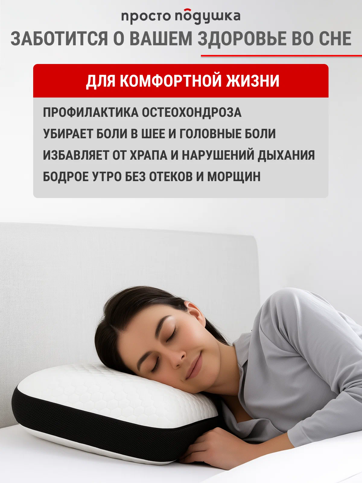 Ортопедическая подушка с эффектом памяти - гарантия здорового и полноценного сна. Подушка с ортопедическим эффектом предупреждает развитие шейного остеохондроза, избавляет от боли, расслабляет мышцы спины и плечевого отдела.