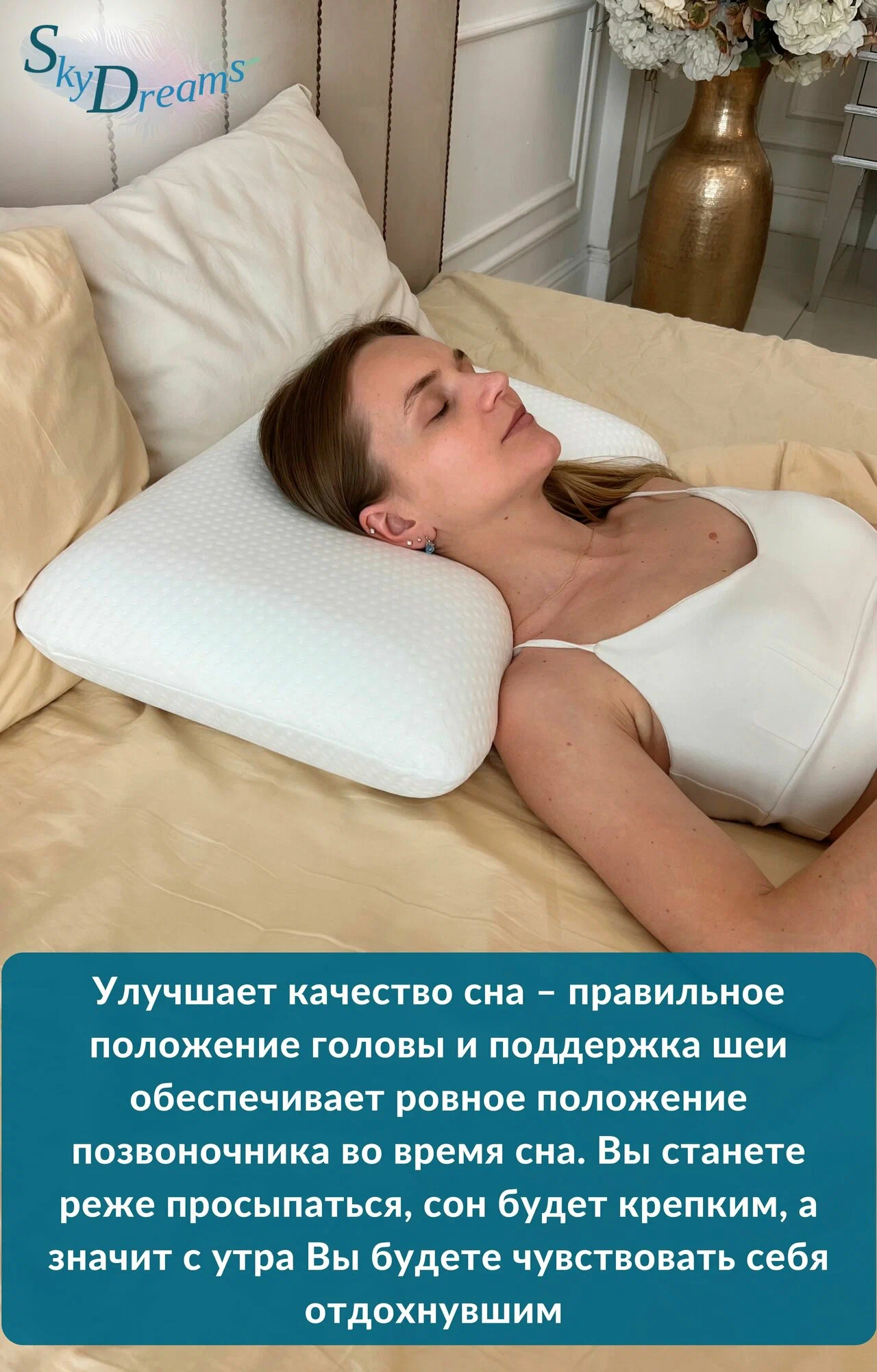 Подушка SkyDreams из вязкоэластичной пены значительно улучшает качество сна и жизни.