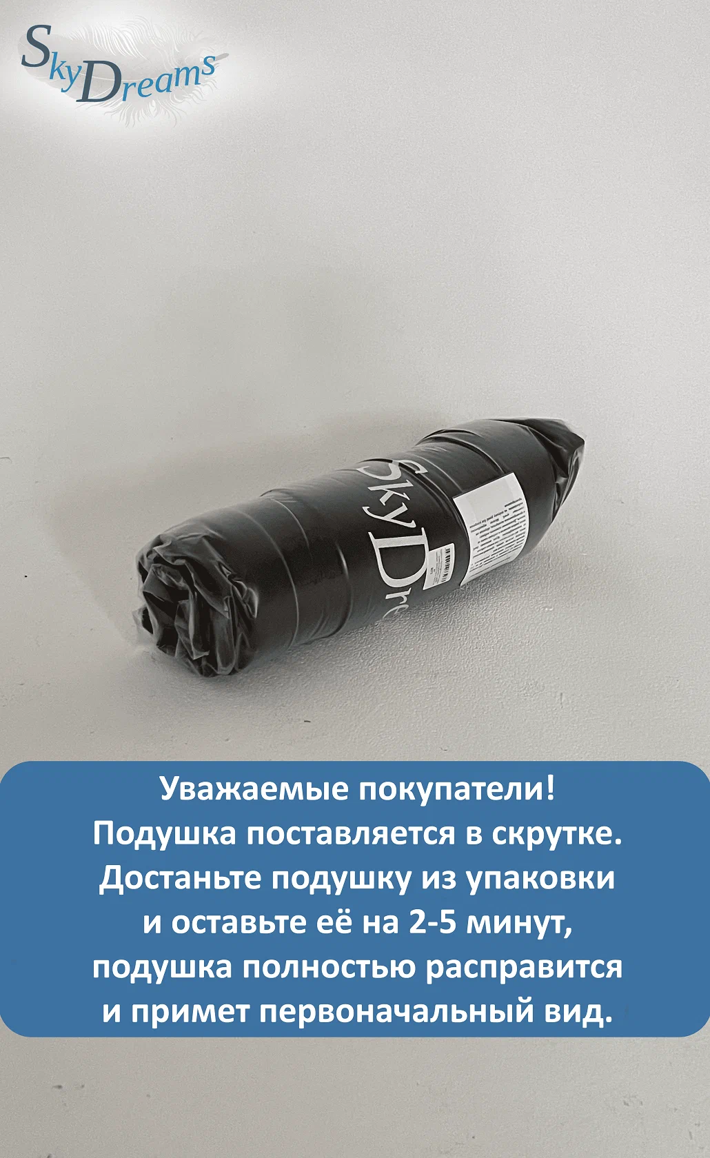 Уважаемые покупатели! Подушка поставляется в скрутке. Достаньте подушку из упаковки и оставьте её на 2-5 минут, подушка полностью расправится и примет первоначальный вид.