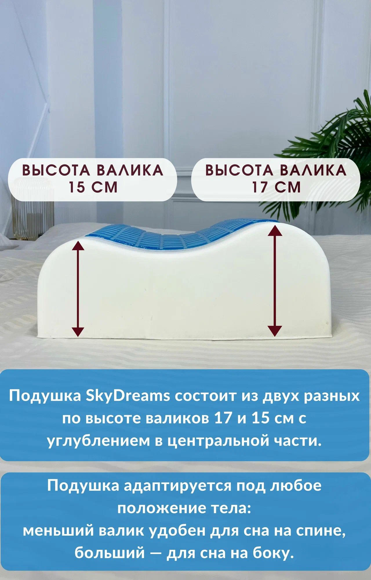 Основные преимущества ортопедических подушек SkyDreams с охлаждающим гелем: