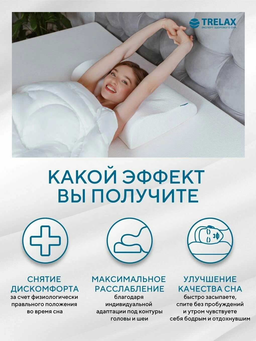 Подушка ортопедическая Respecta от TRELAX с эффектом памяти и ионами серебра разработана при участии врачей-ортопедов, обеспечивает физиологически правильное положение шейного отдела позвоночника во время сна и отдыха. Универсальная модель улучшает качество сна, снимает мышечное напряжения и нормализует кровообращение. Качественный сон — это инвестиция в здоровье. Подарите своему телу возможность не просто спать, а по-настоящему высыпаться.