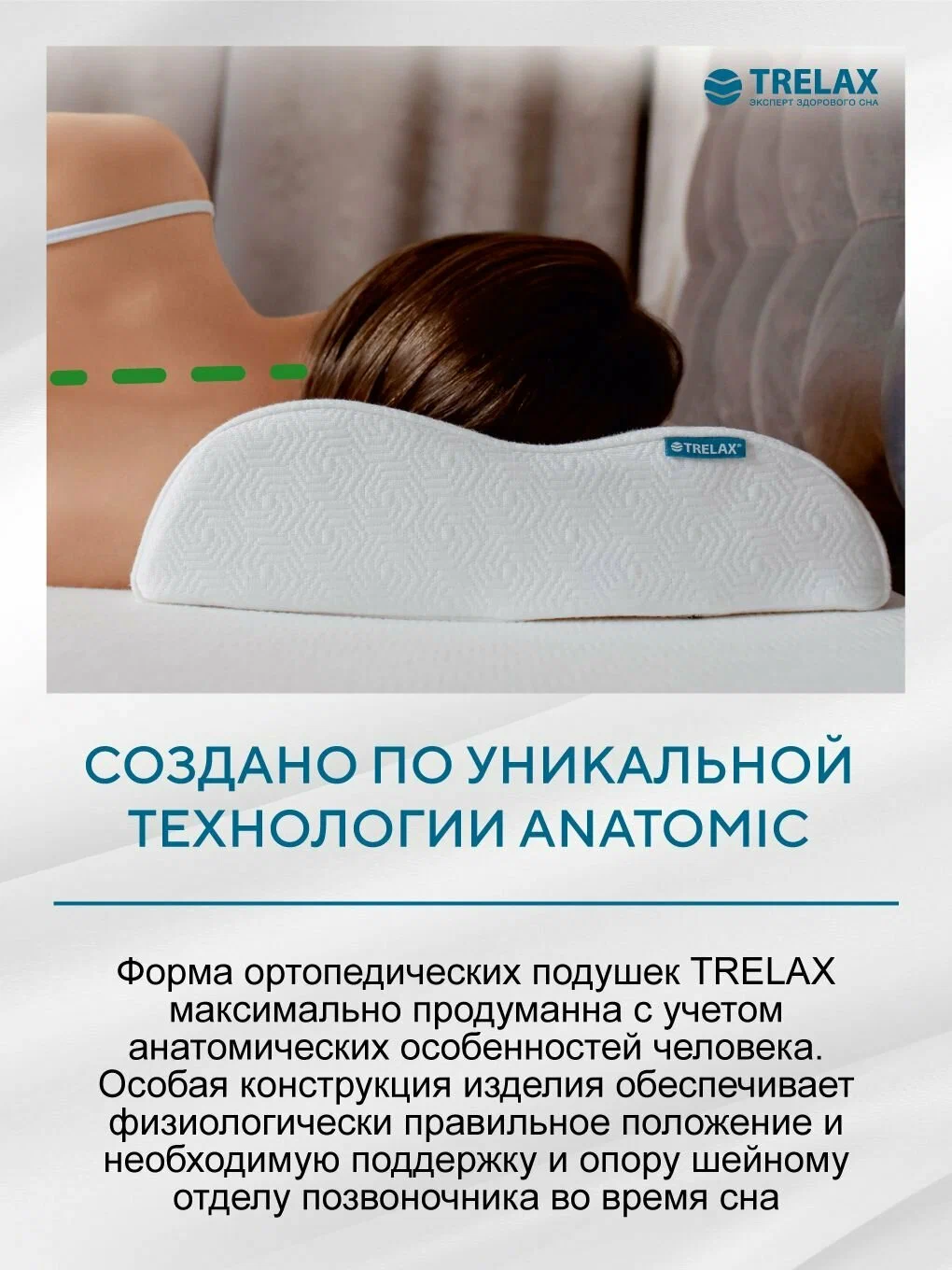 ортопедическая форма ORTHOSHAPE: мягко поддерживает шейный отдел позвоночника в анатомически правильном положении;