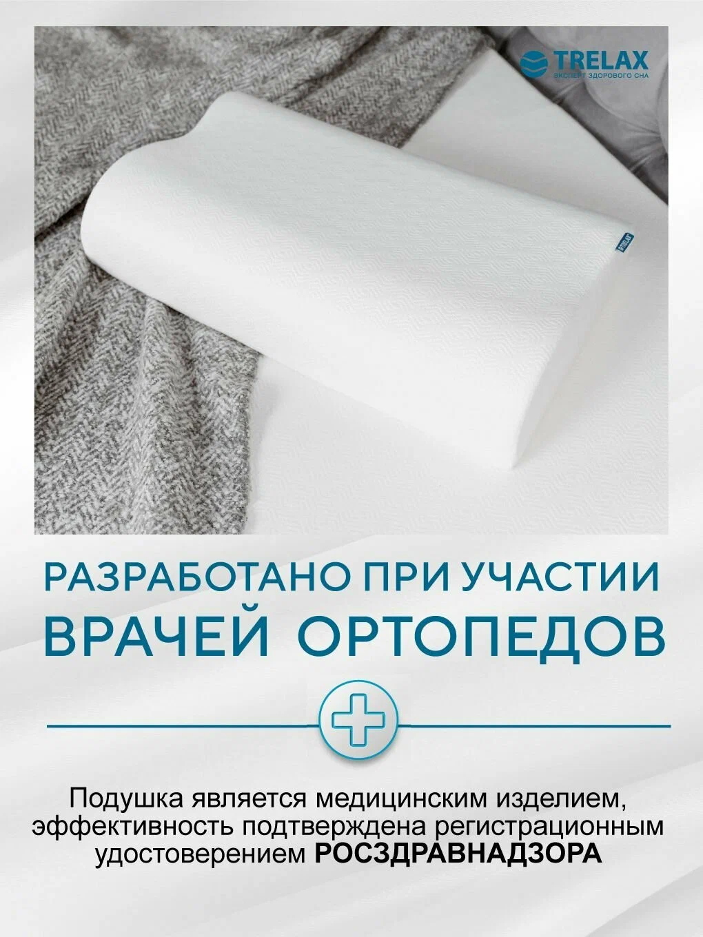 Регистрационное удостоверение на медицинское изделие от 14 сентября 2022 года № ФСР 2009/04606 Зарегистрированное медицинское наименование - Подушка ортопедическая с эффектом памяти под голову, арт. П05