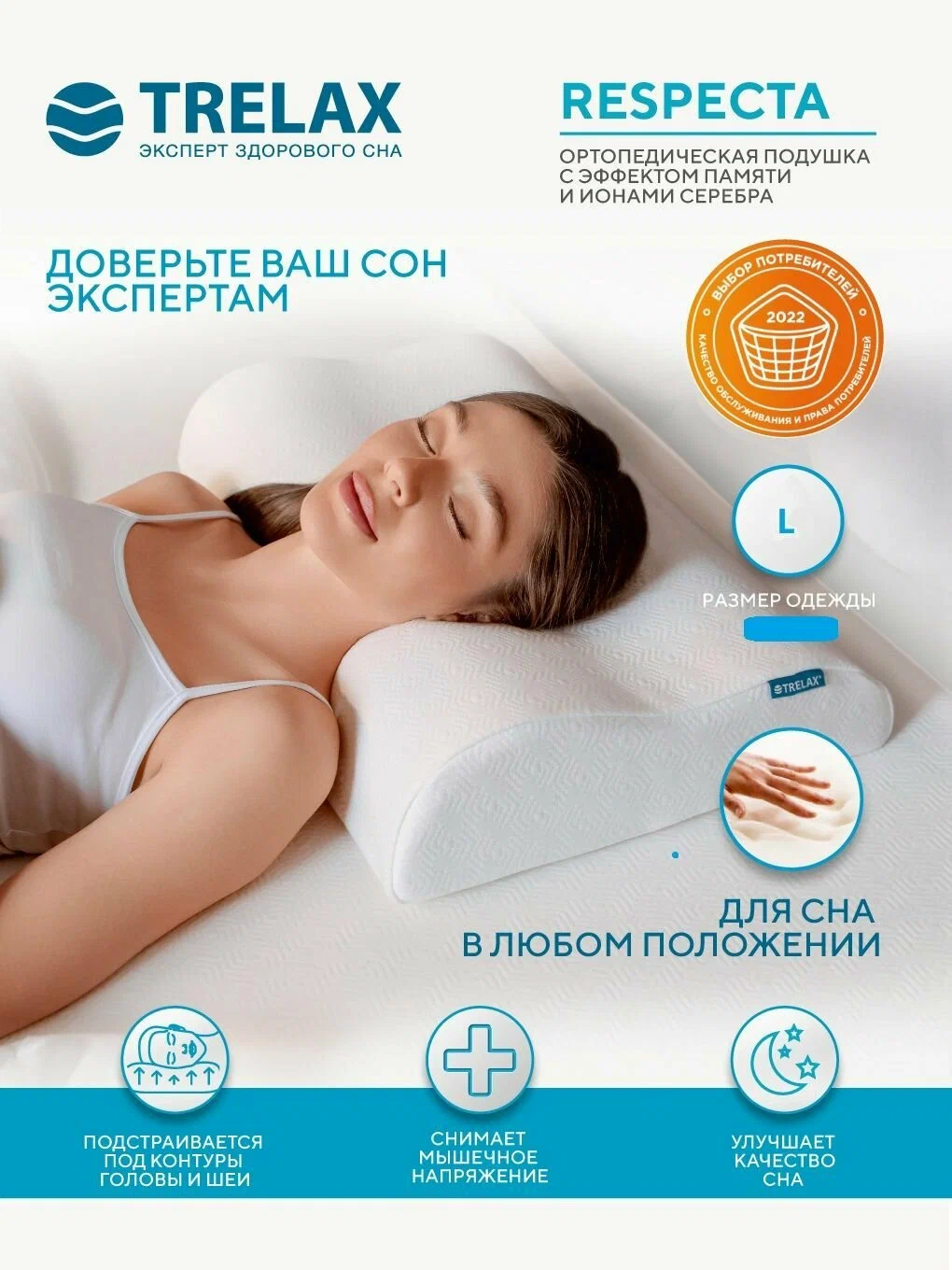 В тесте RESPECTA L сначала ощущалась непривычная геометрия валиков: к 4-й ночи поддержка шеи стала стабильнее. На боку подушка держит линию шея–плечо ровнее, на спине — помогает расслабить затылок. Лучше раскрывается при регулярном использовании.