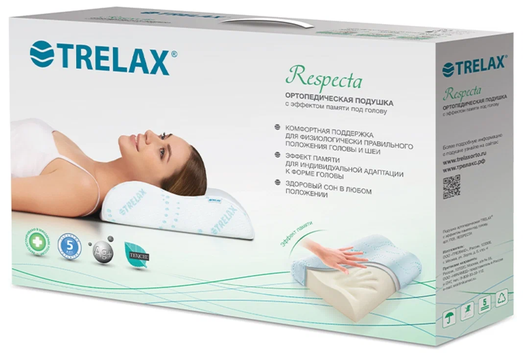 RESPECTA - это комфортная подушка, которая оказывает физиологически правильную, ортопедическую поддержку головы и шеи во время сна и отдыха за счет уникального запатентованного наполнителя – пенополиуретана с эффектом памяти. Идеальная плотность пенополиуретана подушки RESPECTA обеспечивает физиологически правильное положение головы и шеи во время сна.