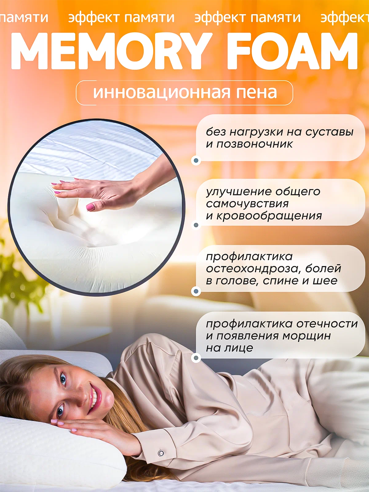 материал с эффектом памяти создает ощущение невесомости, что ускоряет процесс засыпания;